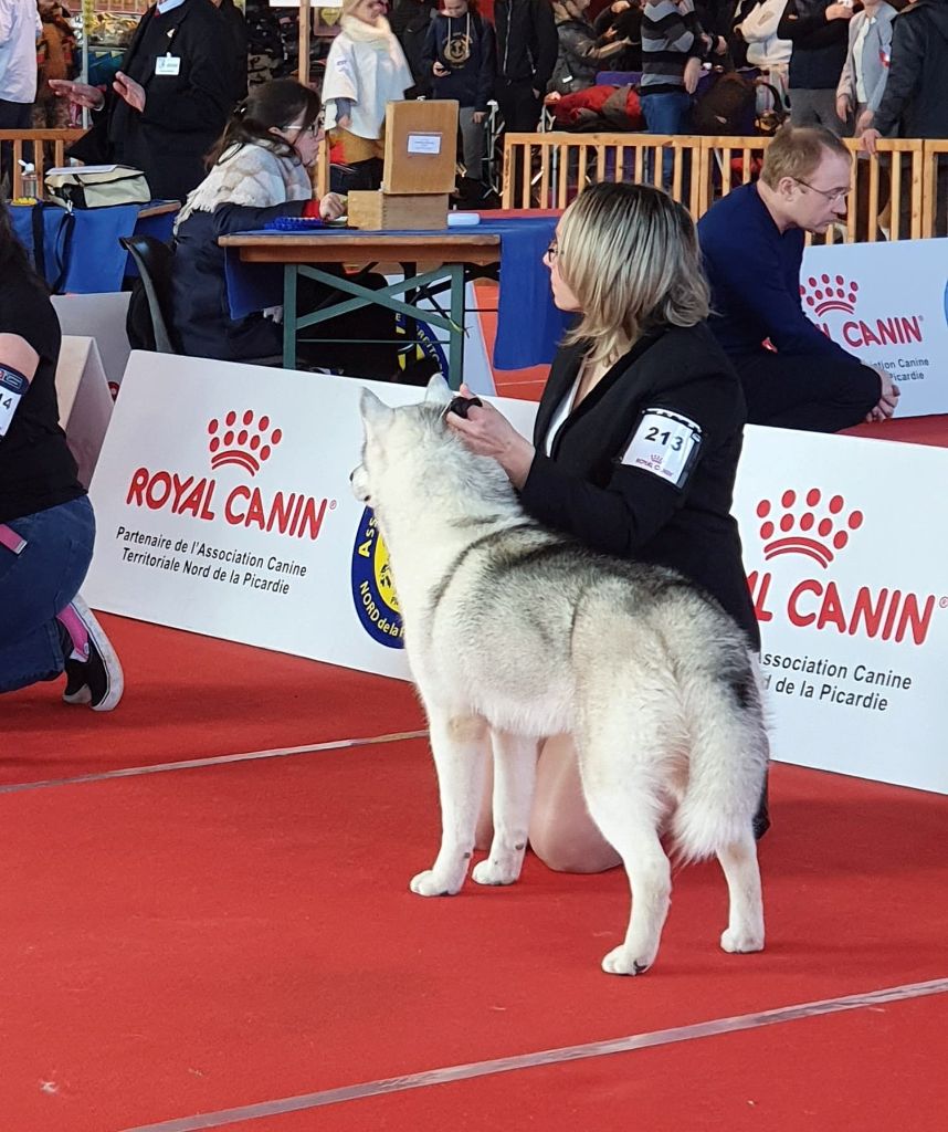 Joli mâle de 6.5 ans, tête masculine, bel ?il forme et couleur, bonne pigmentation en rapport avec la couleur, truffe de neige, bons pieds, bonnes ligne de dos dessus, dessous, bonne poitrine, DCC, port de fouet ok, très bonnes allures, ouvre un légèrement à l'avant en statique.